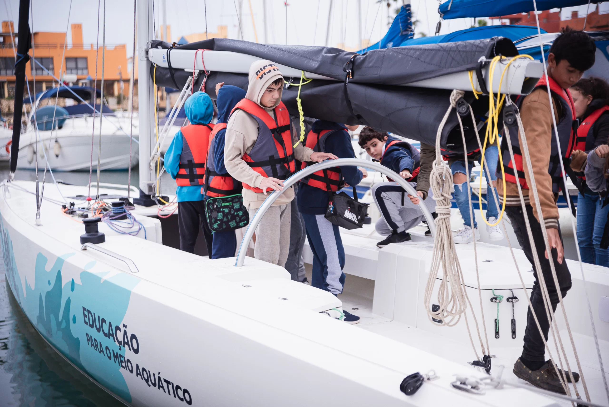 O projeto EMA – Educação para o Meio Aquático foi o primeiro financiado ao abrigo do Fundo Europeu dos Assuntos Marítimos e das Pescas (FEAMP), no âmbito do Programa Operacional MAR 2020. A iniciativa dirige-se aos alunos do 5.º, 6.º e 7.º anos de escolaridade, tendo por objetivo enriquecer os programas curriculares através da integração da cultura marinha no contexto escolar. Durante as sessões realizadas, os alunos tiveram a oportunidade de explorar e conhecer a biodiversidade marinha local, praticar vela e desenvolver maior sensibilidade para com a preservação ambiental dos ecossistemas marinhos. Ao longo dos últimos cinco anos, o EMA tem impactado entre 1000 alunos, por ano letivo, assegurando a participação de alunos com multideficiência nas atividades.